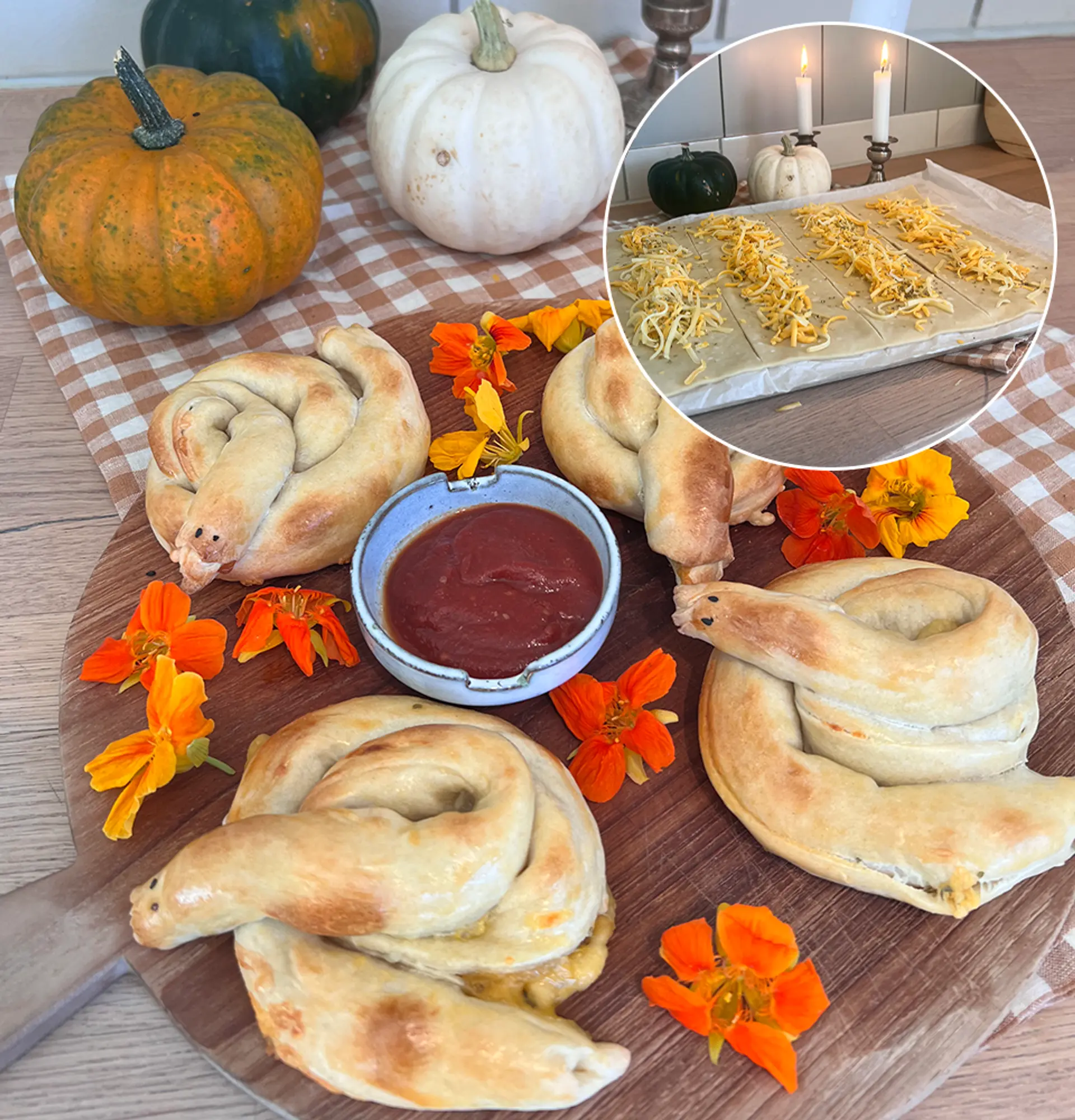 Dessa knasiga, ostfyllda ormar Àr bÄde lÀskiga och supergoda! Perfekt till Halloween-festen eller som en rolig överraskning i matlÄdan.