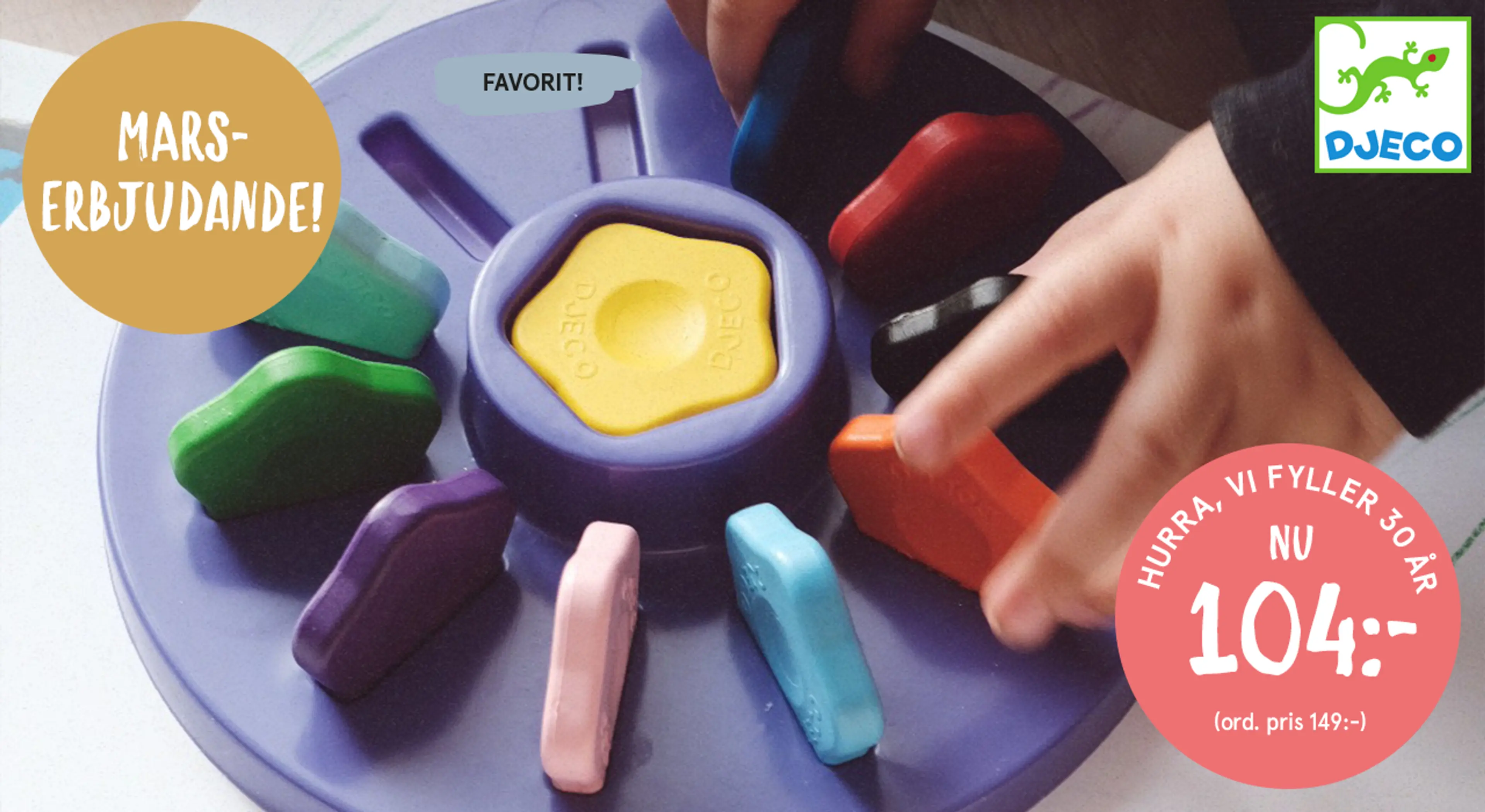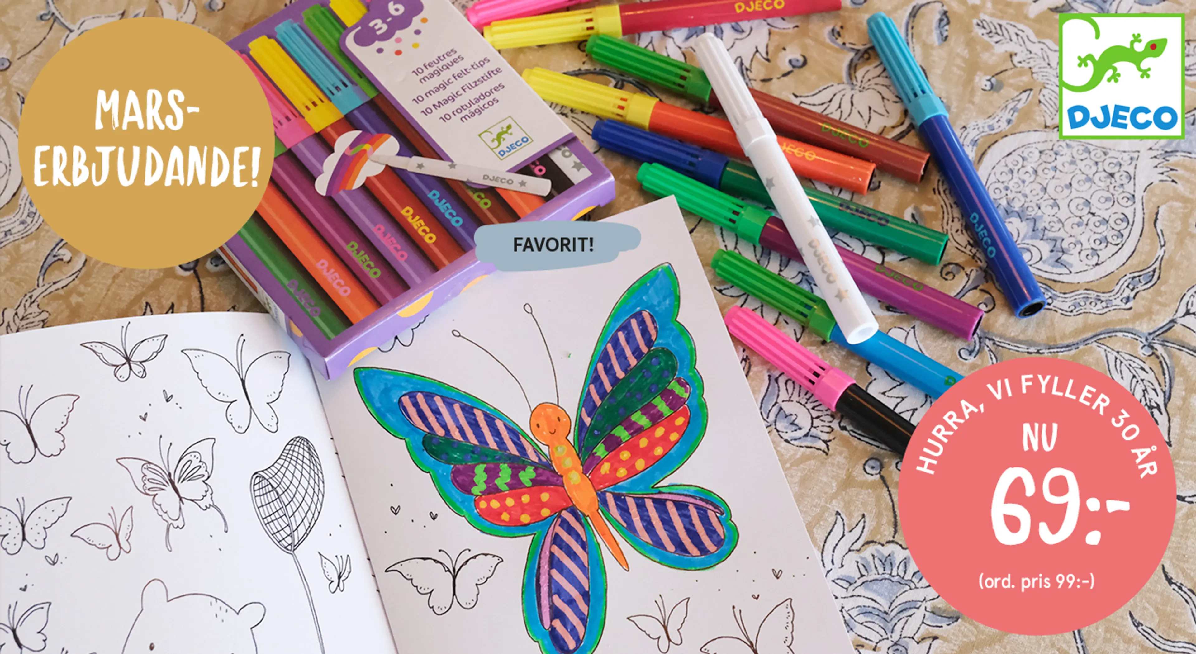 Vi fortsätter firandet och ger dig 30 % på rit- och målarsaker från Djeco.