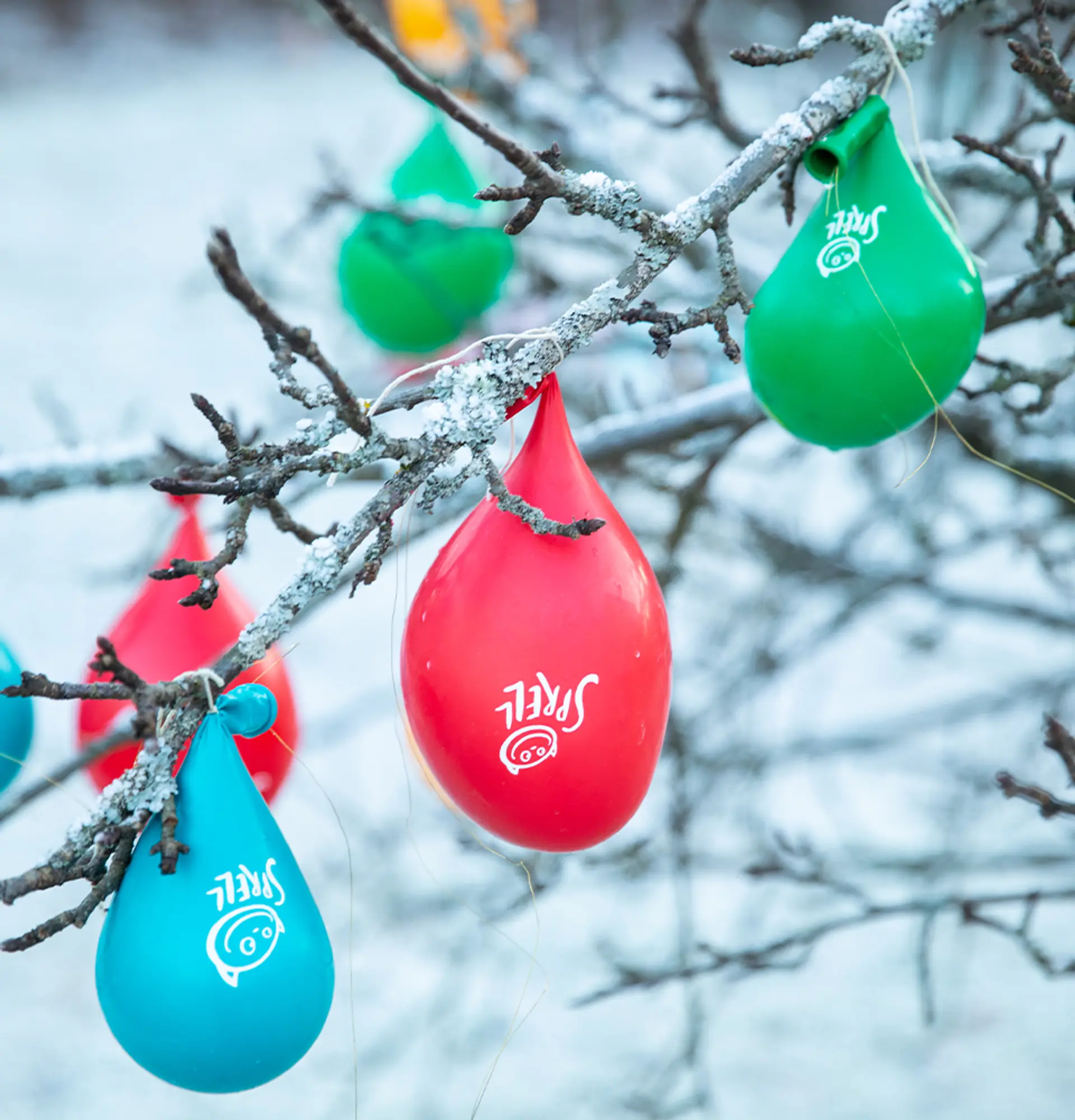 - Knyt en vanlig tråd runt ballongen och häng upp den i trädet
